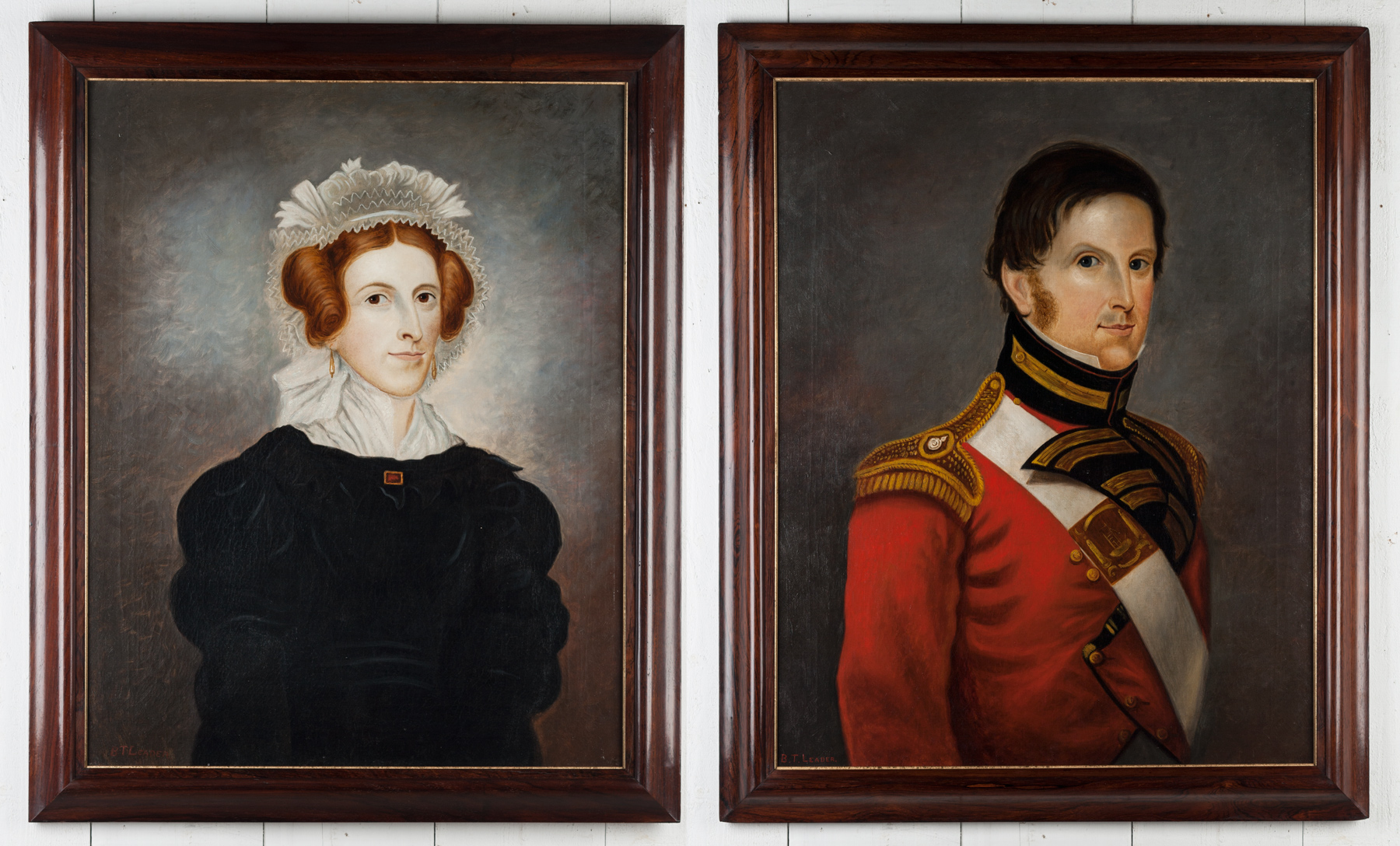 These portraits have been produced as full size portraits by the Irish artist Benjamin Tartarine Leader after miniatures by fellow Irishman, Frederick Buck of Cork. Signed by the artist lower left, within good rosewood veneered moulding frames period to the works, circa 1860.
