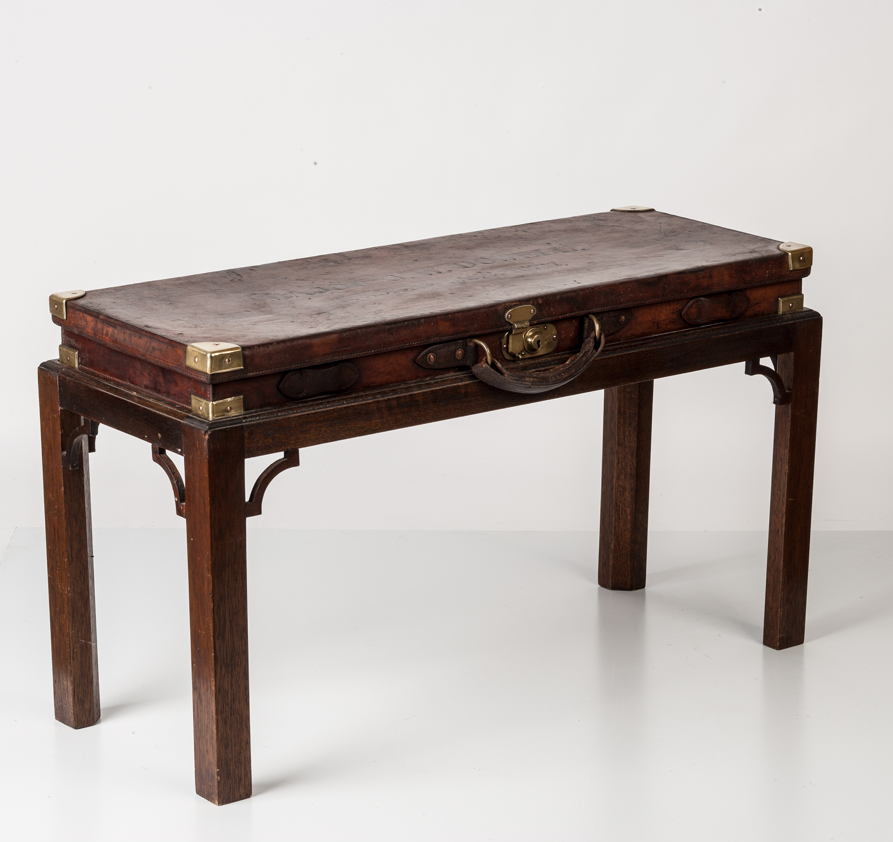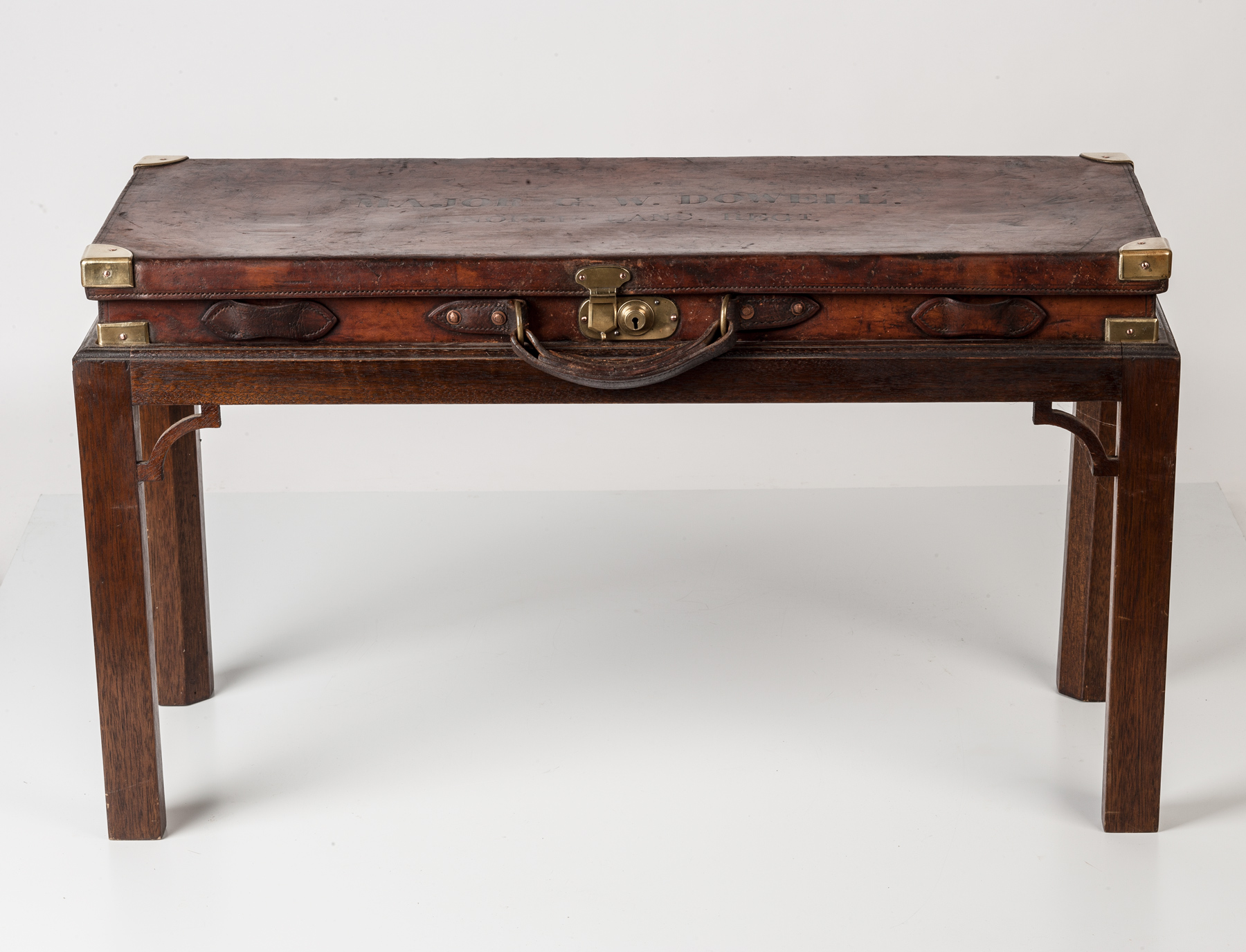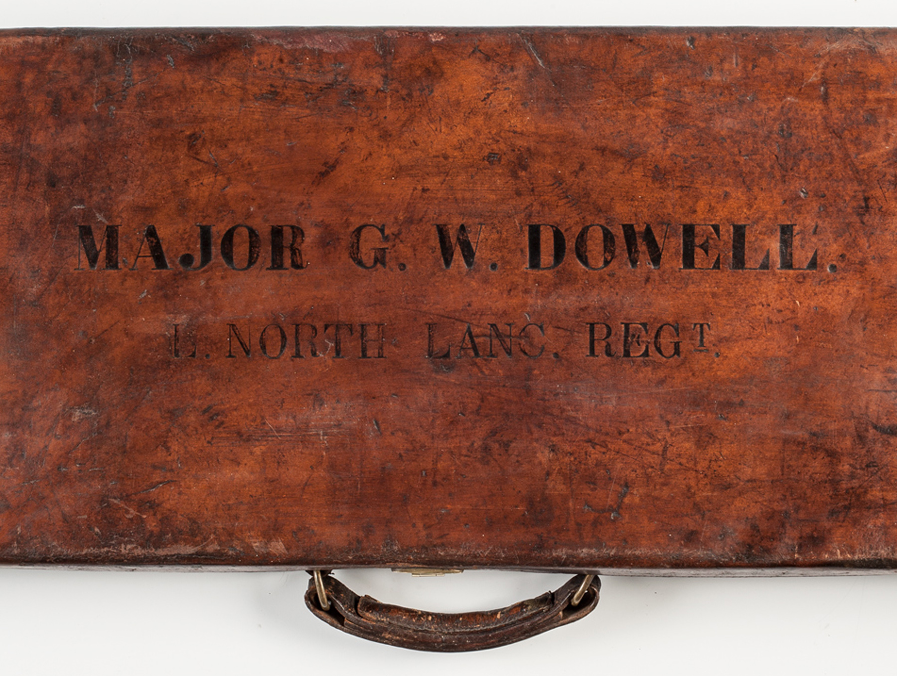 Embossed with the name of the original owner Major G. W Dowell of The Loyal North Lancashire Regiment. Now on a recently made oak stand, the case made circa 1900.