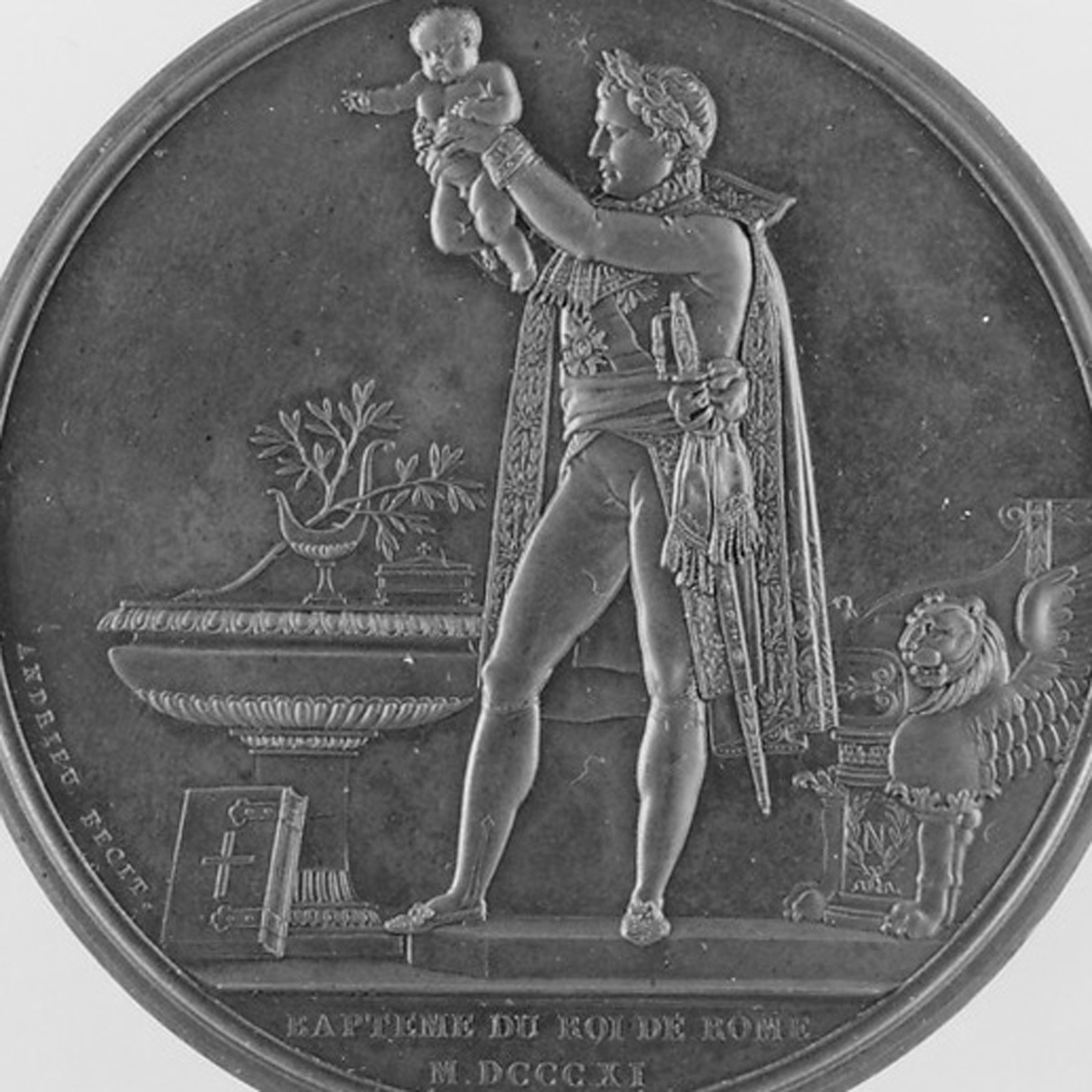 The present inkstand is based on the design for a celebratory medal produced by Bertrand Andrieu (French, 1761–1822), struck and issued in 1811.
